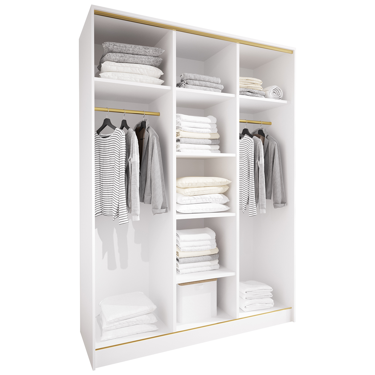 SKU: Korpus szafy przesuwnej 150 biały(okucia złote;2 drążki, bez szuflad) Kategorie: ,