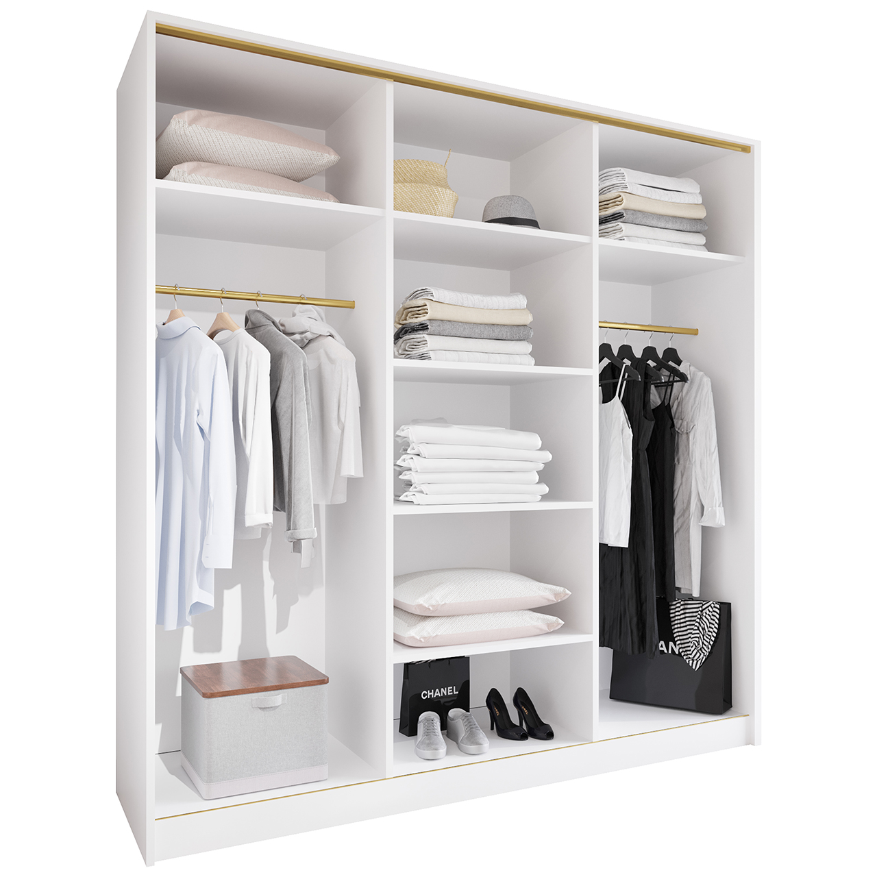 SKU: Korpus szafy przesuwnej 180 biały(okucia złote;2 drążki, bez szuflad) Kategorie: ,