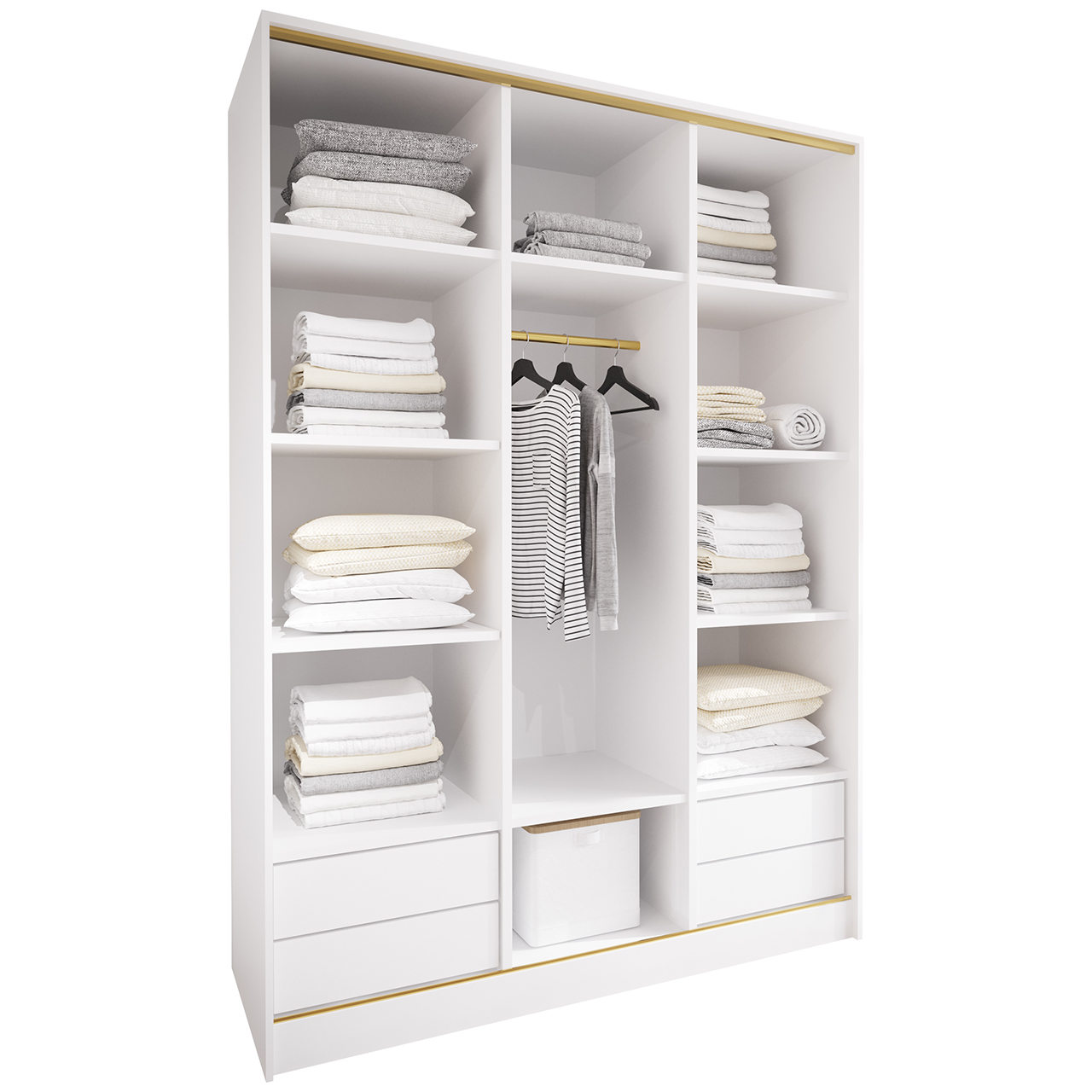 SKU: Korpus szafy przesuwnej 150 biały(okucia złote;1 drążek, szuflady) Kategorie: ,