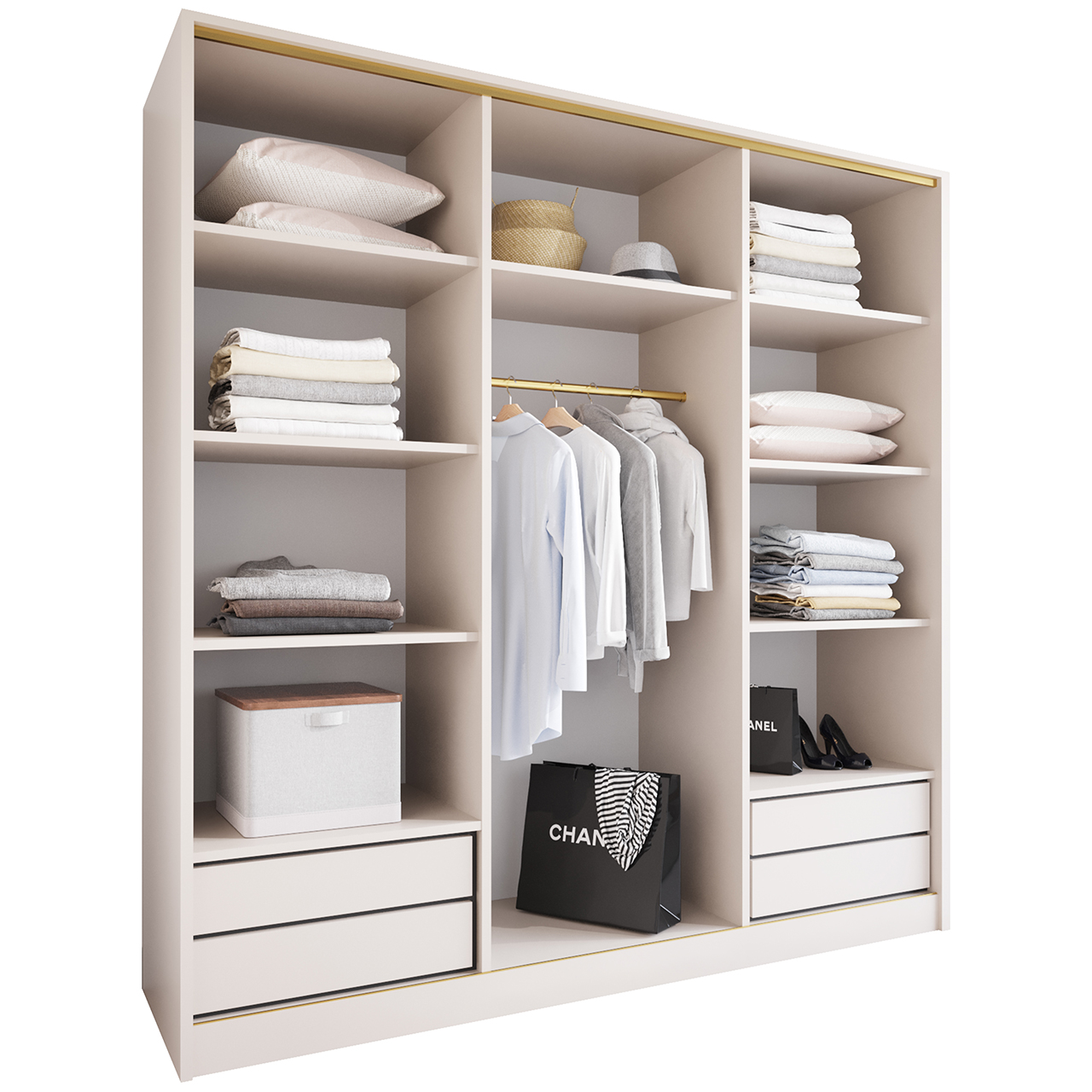 SKU: Korpus szafy przesuwnej 180 kaszmir(okucia złote;1 drążek, szuflady) Kategorie: ,