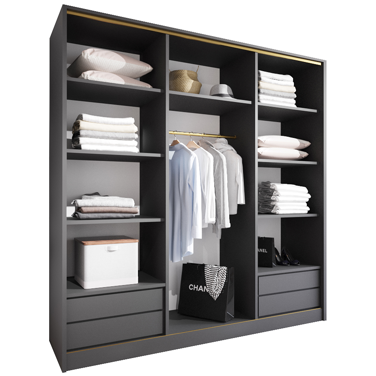 SKU: Korpus szafy przesuwnej 200 czarny(okucia złote;1 drążek, szuflady) Kategorie: ,