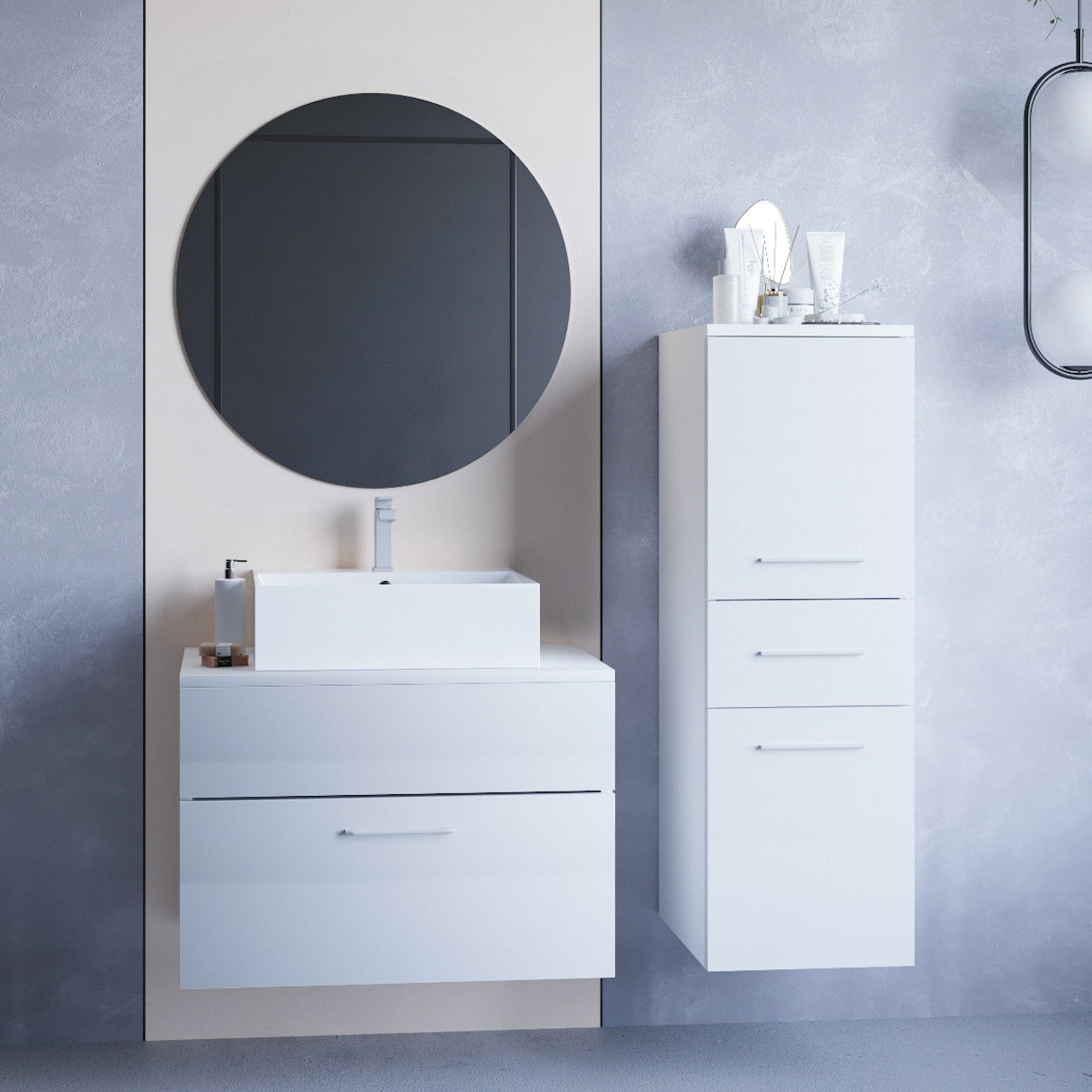 LP3 – Skříňka nízká (30/92/32) LP7 – Skříňka pod umyvadlo z blatem (60/46/35) MIR2 – Kulaté koupelnové zrcadlo (60/60)  |