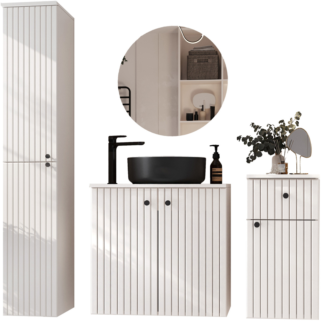 Koupelnová skříňka ASTO 01 (30/162/32) Skříňka pod umyvadlo ASTO 02 (60/58/36) Koupelnová skříňka ASTO 03 (30/60/32) Kulaté koupelnové zrcadlo MIR2 (60/60) |