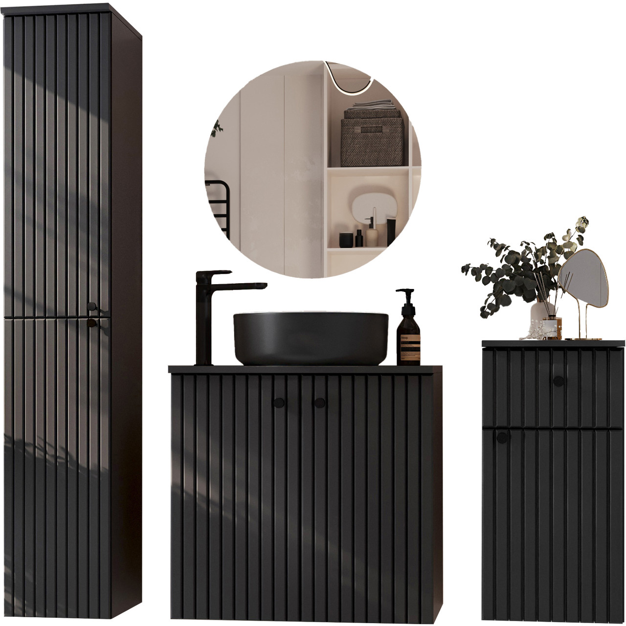 Koupelnová skříňka ASTO 01 (30/162/32) Skříňka pod umyvadlo ASTO 02 (60/58/36) Koupelnová skříňka ASTO 03 (30/60/32) Kulaté koupelnové zrcadlo MIR2 (60/60) |