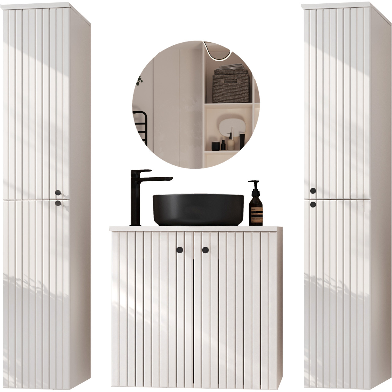 Koupelnová skříňka ASTO 01 (30/162/32) x2 Skříňka pod umyvadlo ASTO 02 (60/58/36) Kulaté koupelnové zrcadlo MIR2 (60/60) |