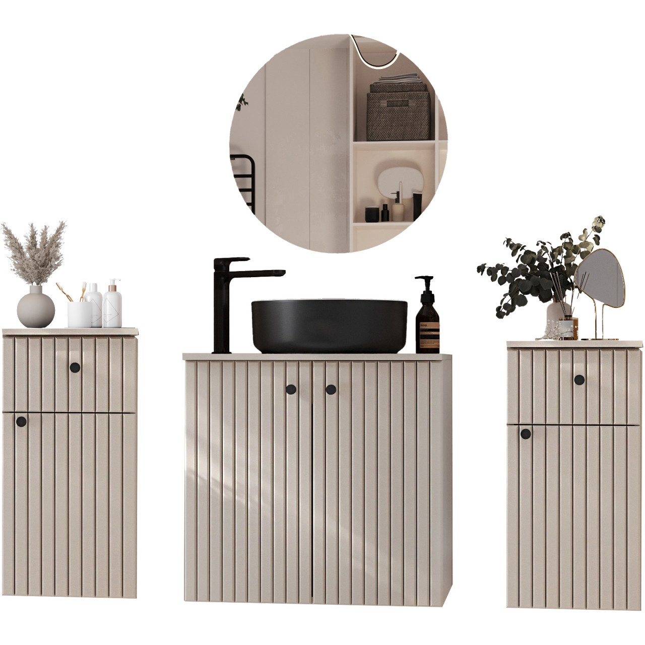 Skříňka pod umyvadlo ASTO 02 (60/58/36) Koupelnová skříňka ASTO 03 (30/60/32) x2 Kulaté koupelnové zrcadlo MIR2 (60/60) |