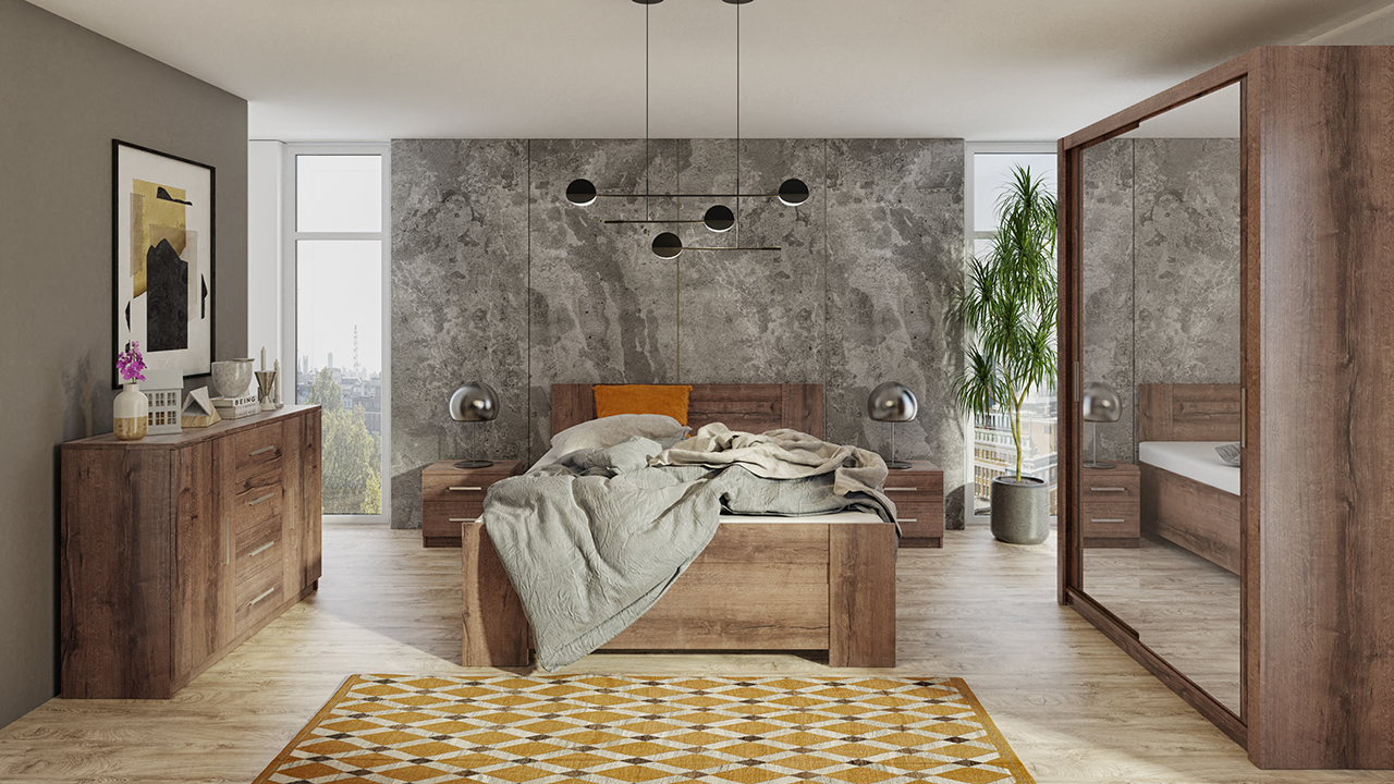 Komoda BONEY BO01 (120/90/40) Postel s úložným prostorem 160×200 BONEY BO02 (165/90/205) Noční stolek BONEY BO03 (50/45/35) – 2ks Skříň s posuvnými dveřmi se zrcadlem 150 BONEY BO08 (150/215/62) |