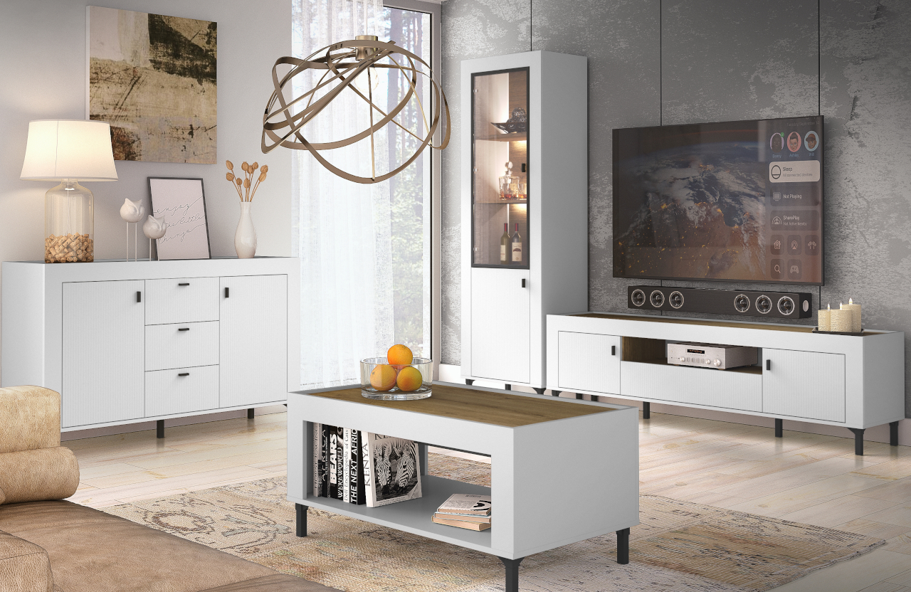 Vitrína MOSSO 03 (60/194/40) Komoda MOSSO 06 (138/84/40) Komoda pod TV MOSSO 08 (177/52/40) Konferenční stolek MOSSO 09 (94/45/53) |