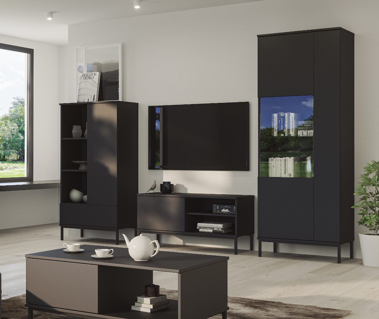 Konferenční stolek QATAR QT02 (100/47/60) Regál QATAR QT03 (70/140/41) RTV skříňka QATAR QT04 (100/50/41) Vitrína QATAR QT07 (70/190/41) |