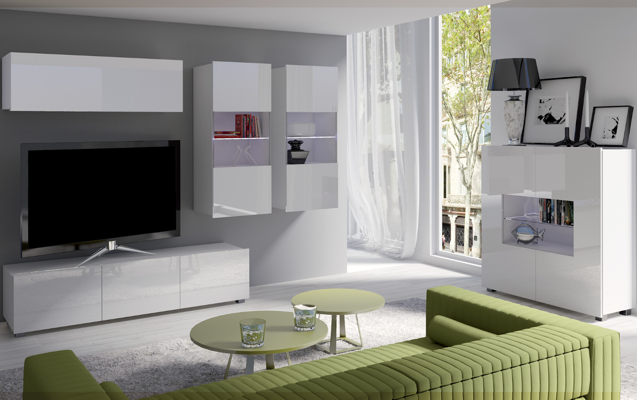 Skříňka závěsná CALABRIA CL1 (105/34/32) Závěsná vitrína CALABRIA CL2 (45/117/32) x2 RTV skříňka CALABRIA CL4 (150/37/43) Komoda CALABRIA CL5 (100/107/35) |