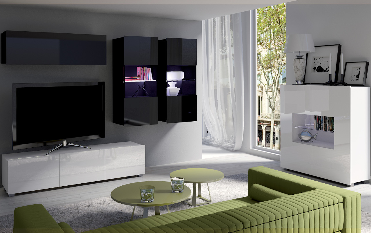 Skříňka závěsná CALABRIA CL1 (105/34/32) Závěsná vitrína CALABRIA CL2 (45/117/32) x2 RTV skříňka CALABRIA CL4 (150/37/43) Komoda CALABRIA CL5 (100/107/35) |