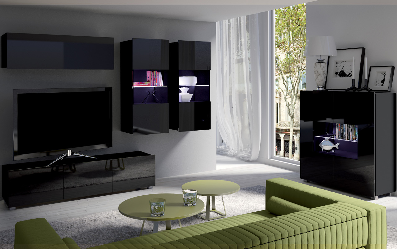 Skříňka závěsná CALABRIA CL1 (105/34/32) Závěsná vitrína CALABRIA CL2 (45/117/32) x2 RTV skříňka CALABRIA CL4 (150/37/43) Komoda CALABRIA CL5 (100/107/35) |