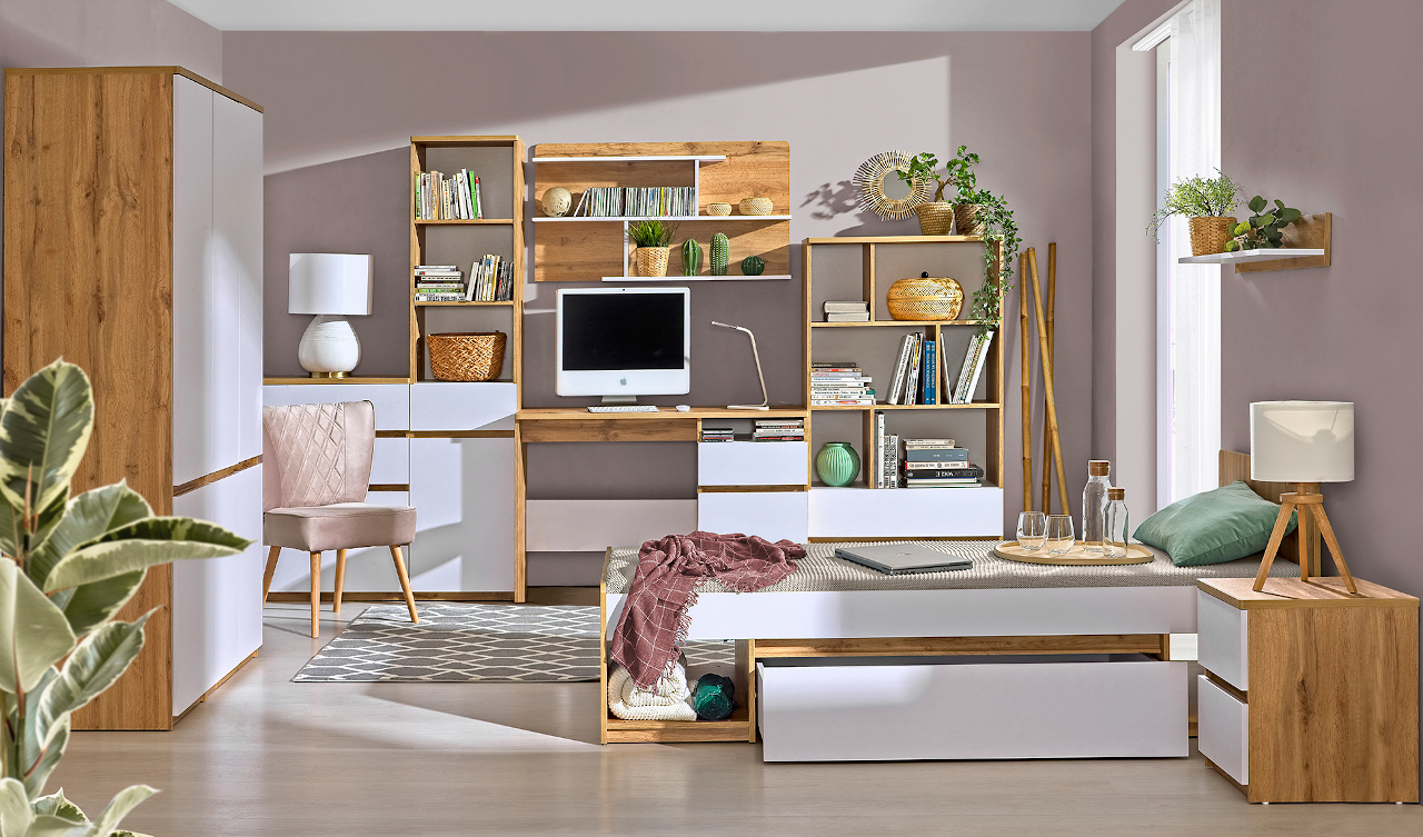 Skříň CARA 01 (80/195/52) Skříň CARA 02 (45/195/52) Regál CARA 03 (45/195/40) Regál CARA 04 (80/150/40) Komoda CARA 05 (80/94/40) Psací stůl CARA 07 (120/80/52) Police CARA 08 (80/15/20) Postel 90×195 CARA 09 (94/74/198) Noční stolek CARA 10 (40/49/40) Police CARA 12 (110/60/20) |