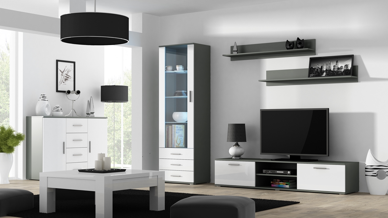 Vitrína vysoká BRNO SH1 (60/192/41) Komoda pod TV 180 BRNO SH3 (180/37/43) Závěsná police BRNO SH5 (2ks) (125/20/20) Komoda BRNO UNI SH6 (132/92/38) |