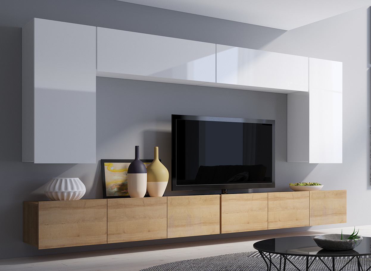 Skříňka závěsná CALABRIA CL1 (105/34/32) x2 RTV skříňka CALABRIA CL4 (150/37/43) x2 Skříňka závěsná CALABRIA CL8 (45/117/32) x2  |