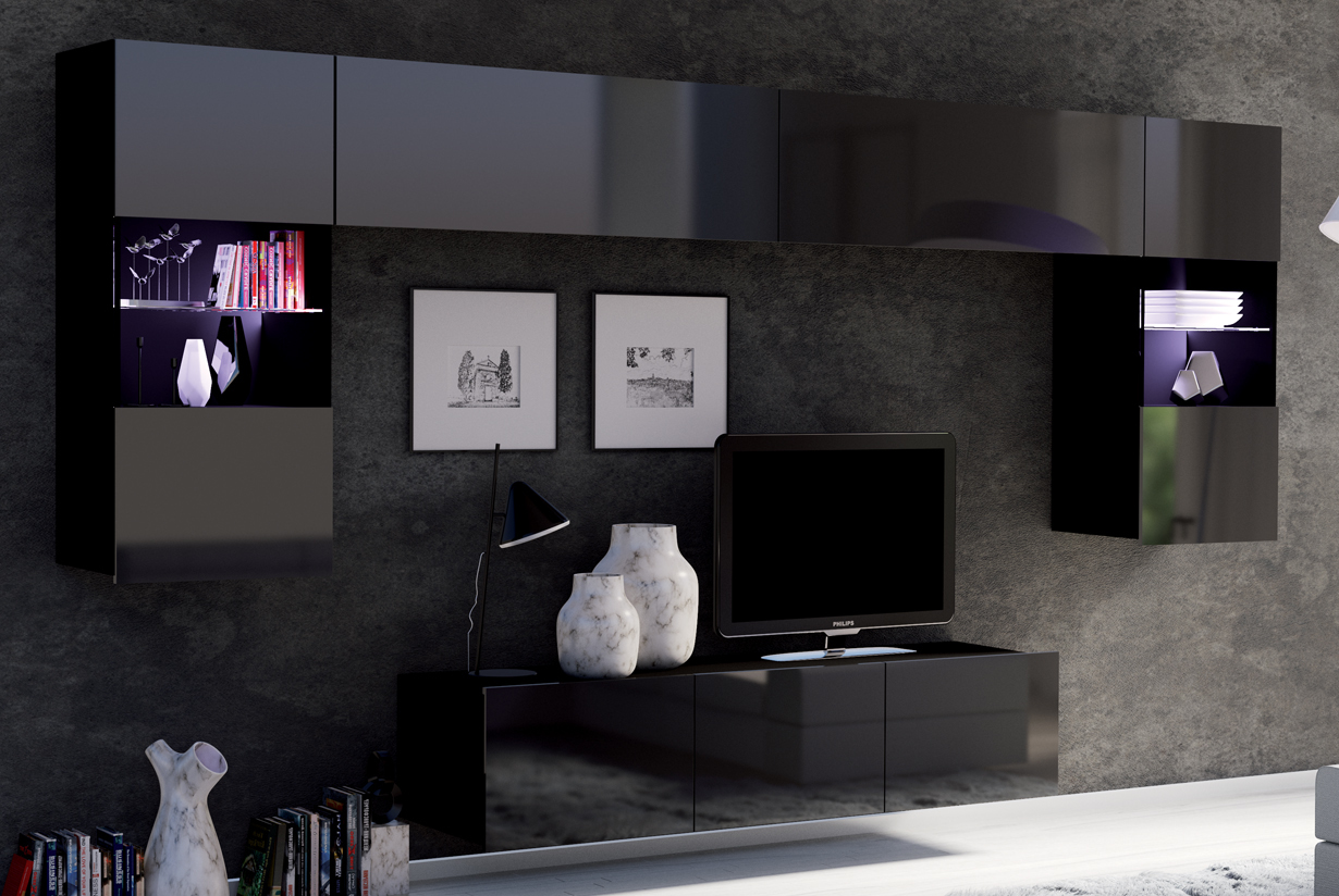 Skříňka závěsná CALABRIA CL1 (105/34/32) x2 Závěsná vitrína CALABRIA CL2 (45/117/32) x2 RTV skříňka CALABRIA CL4 (150/37/43) |