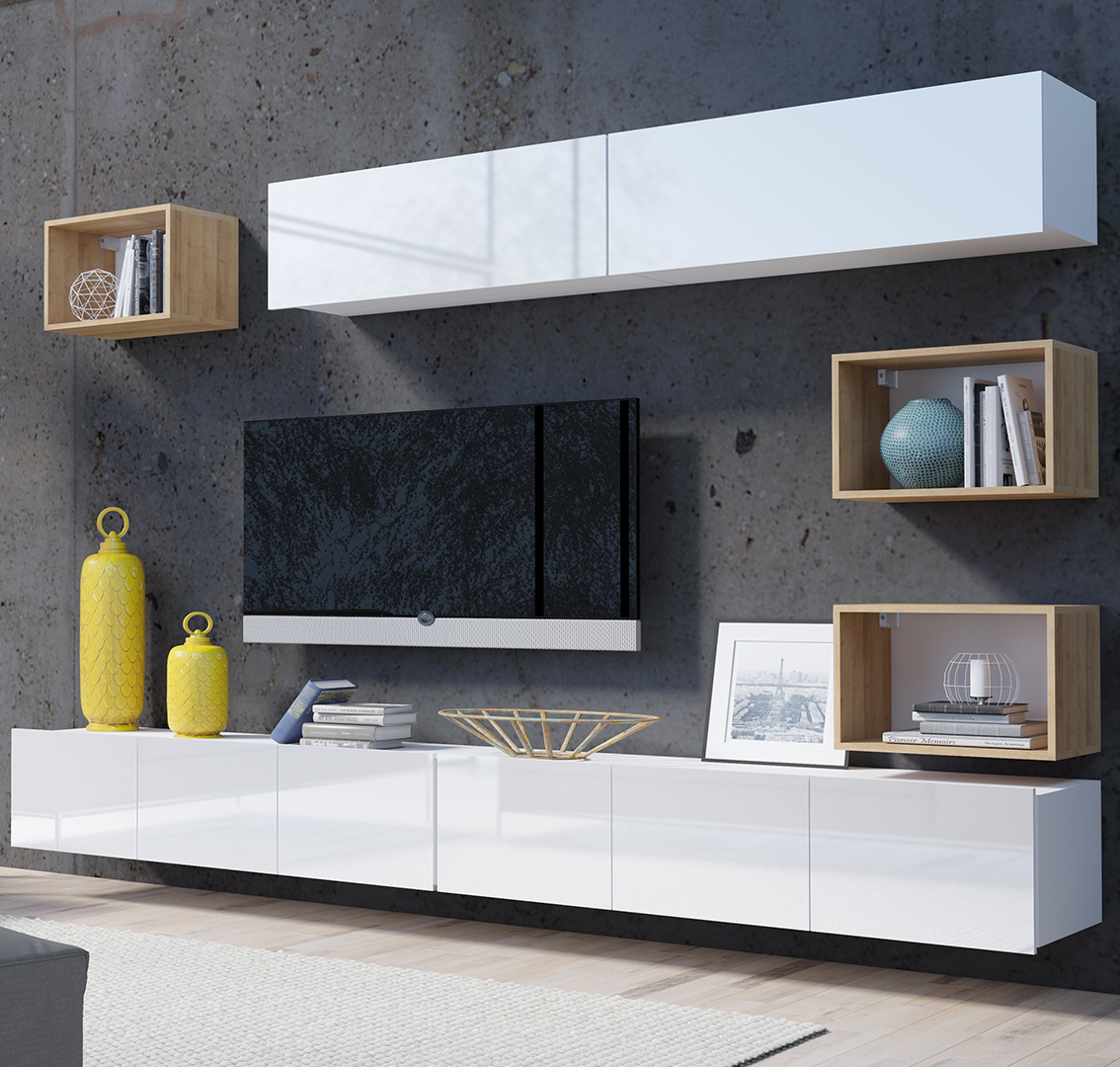Skříňka závěsná CALABRIA CL1 (105/34/32) x2 RTV skříňka CALABRIA CL4 (150/37/43) x2 Police CALABRIA CL14 (50/33/30) x3 |