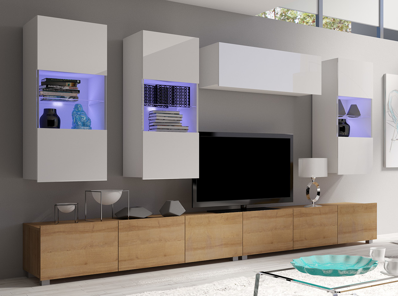 Skříňka závěsná CALABRIA CL1 (105/34/32) Závěsná vitrína CALABRIA CL2 (45/117/32) x3 RTV skříňka CALABRIA CL4 (150/37/43) x2  |