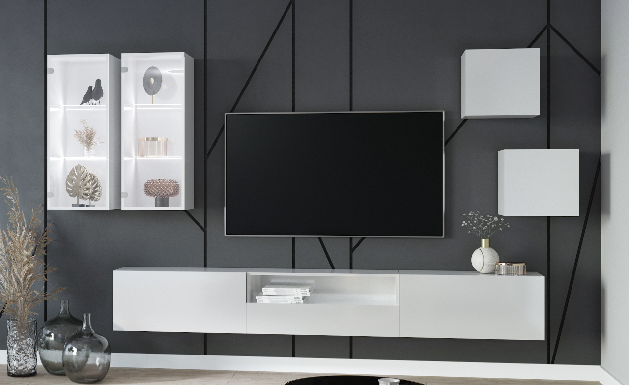 ON1B – Malá skříňka závěsná (40/37/35) – 2ks ON4B – Velká skříňka závěsná (91/37/35) – 2ks ON6B – Komoda pod TV (91/37/35) ON7 – Závěsná vitrína (37/91/35) – 2ks |