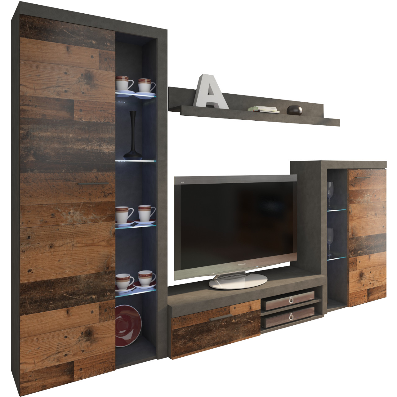 Vitrína vysoká (75/190/33,8) Komoda pod TV (120/31,5/40,3) Závěsná police (140/20,5/19,5) Nízká vitrína (75/117/33,8) |