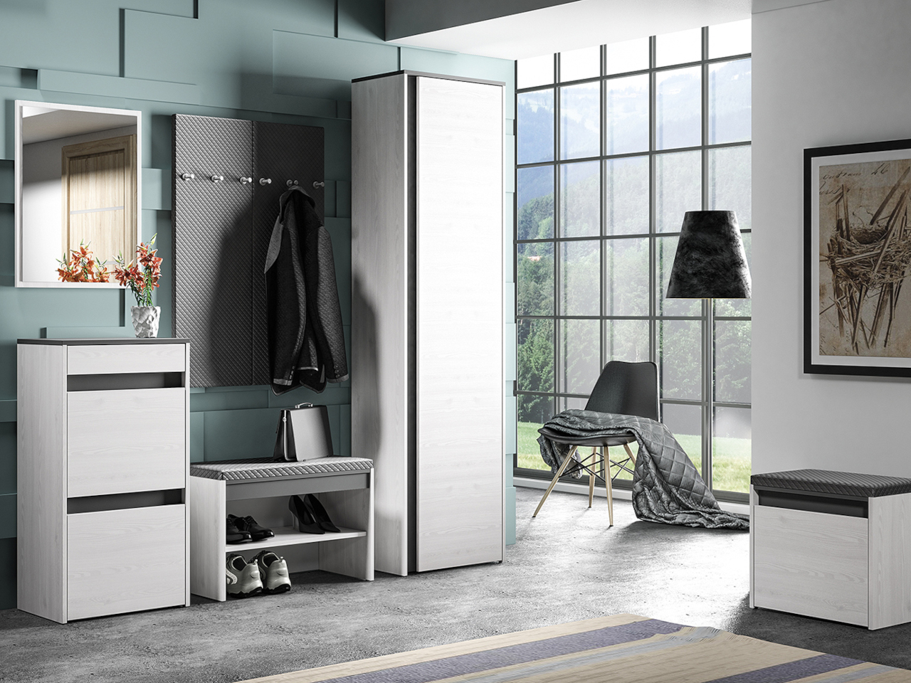 Botník se sedákem HAGA 03 (70/47/34) Botník HAGA 04 (50/94/34) Skříň do předsíně HAGA 06 (54/198/34) Čalouněný věšák HAGA 07 (34/102/3) – 2 ks Zrcadlo HAGA 09 (50/65/2) |