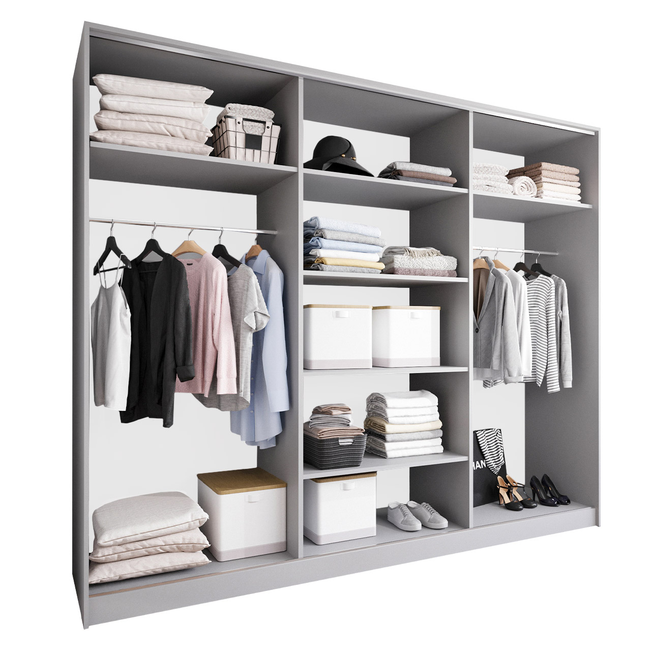 SKU: Korpus szafy przesuwnej 270 szary (okucia srebrne;2 drążki, bez szuflad) Kategorie: ,