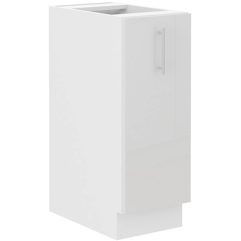 Vnitřek skříňky v bílé barvě. Koš CARGO chromovaný, 2 x police. |