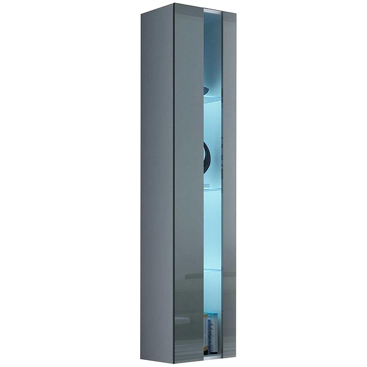 Vitrína vertikální GOVI NEW GREY A VG8 bílá / šedý lesk